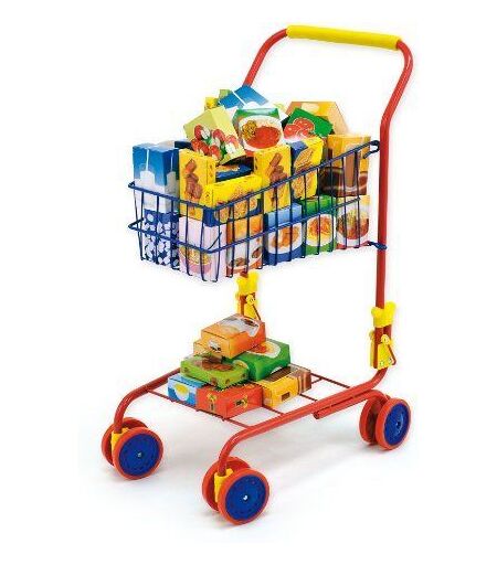 Bayer Design- Bayer Design-75002-Jeu D Imitation-Commerçant-Chariot De Supermarché Couleur Avec Différentes Boîtes De Produits-60 Cm Multicolore 75002