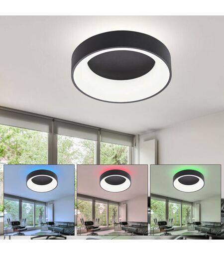 WOFI Plafonnier salon plafonnier led rgb plafonnier télécommande, rétroéclairage changement de couleur dimmable cct, noir, led 26W 2100Lm 3000-6200K,