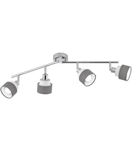 Description Un coup de projecteur ! Le chrome classique s'allie de manière attrayante au gris chaud. Cette combinaison est particulièrement valorisante et élégante. Les abat-jour mobiles permettent de placer des accents lumineux aux endroits souhaités dans la pièce et de mettre en valeur les points forts. Les ampoules ne sont pas comprises dans la livraison ! Détails du luminaire • Type de lampe : rampe de spots• Matériaux : acier, textile• Couleur : chrome, gris• classe de protection : IP20• classe de protection : 1• Spots mobiles• Diamètre de l'abat-jour en cm : 9• Hauteur de l'abat-jour en cm : 8• Longueur x largeur x hauteur en cm : 85 x 20,2 9 • Ampoules : 4x E14• Ampoules incluses : Non• Puissance de l'ampoule : 4x max. 28 watts• Alimentation électrique : 230V, 50Hz ...