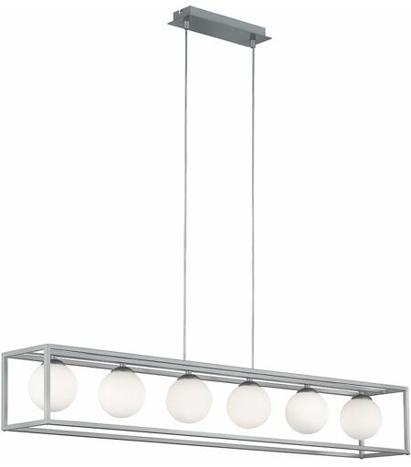 Suspension lampe suspension lampe de table à manger lampe de salon, avec cadre et boules de verre blanc, 6x3.5W 6x320lm, 3000K, LxH 105x150 cm Wofi