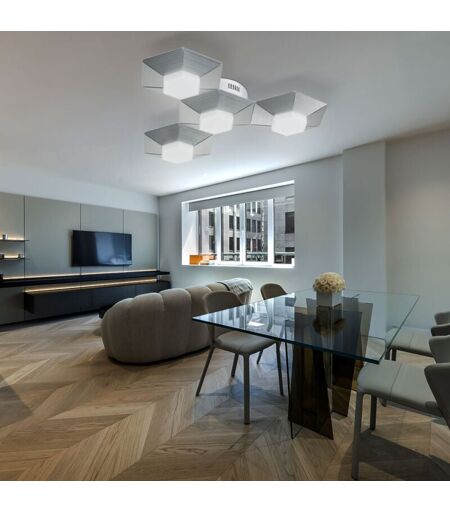 Plafonnier led plafonnier dimmable salon lampes design modernes salon, 3 niveaux, aluminium, 18W 1550Lm blanc chaud, LxlxH 58x50,5x9,5 cm Wofi