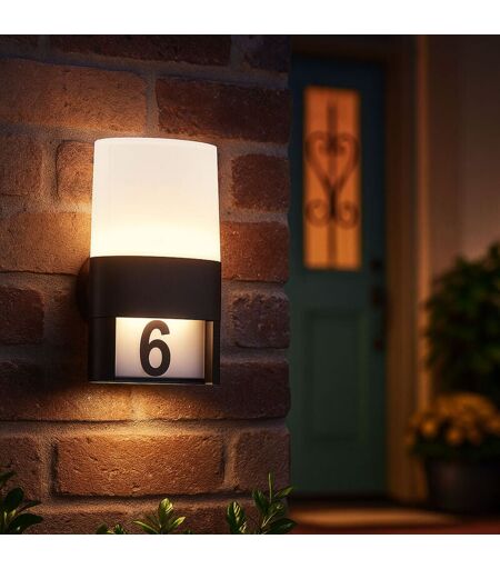 WOFI Applique murale extérieure applique numéro de maison lumière extérieure IP54, applique maison terrasse jardin, métal noir, autocollant, 1x led 10,5W