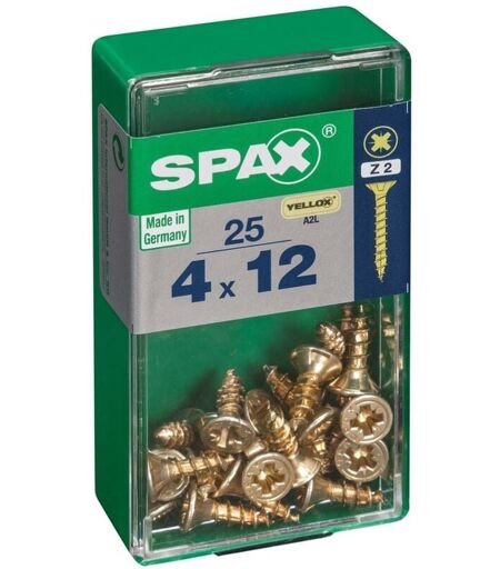 Spax - Boîte 25 Unités. Vis a Bois Cab. Plat Yellox 4.0x12mm