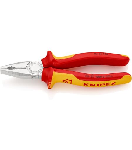 03 06 180 sb Pince universelle isolées par gaines bi-matière, certifiées vde chromée 180 mm - Knipex