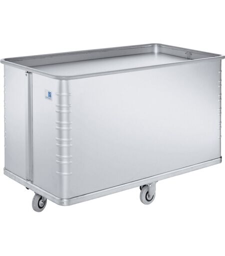 Chariot avec fond à ressort, aluminium anodisé, 2 roulettes pivotantes et 2 fixes. Produit livré = monté. Longueur = 1060 mm. Largeur = 710 mm. Hauteur = 820 mm. Longueur intérieure = 1000 mm. Largeur intérieure = 650 mm. Hauteur intérieure = 485 mm. Capacité = 315 l. Matériau parois latérales = aluminium. Surface = anodisé. Equipement = pare-fil. Bandages = caoutchouc non tachant. Train de roulement = 2 roulettes pivotantes, 2 roulettes fixes. Diamètre roues = 125 mm. Roulement = roulement à rouleaux. Type de produit = chariots avec fond à ressort. En aluminium anodisé. Capacité 315 litres. Déplacement facile même dans les endroits exigus. Bord supérieur: profilé d'aluminium à rembourrage plastique. Force 90 kg, réglable au pas de 15 kg. 2 roulettes pivotantes et 2 fixes, Ø 125 mm, bandages caoutchouc non tachants, jantes avec roulement à rouleaux et pare-fils. Dimensions extérieures L x l x h 1060 x 710 x 820 mm. Dimensions intérieures L x l x h 1000 x 650 x 485 mm. Adaptation de la ...