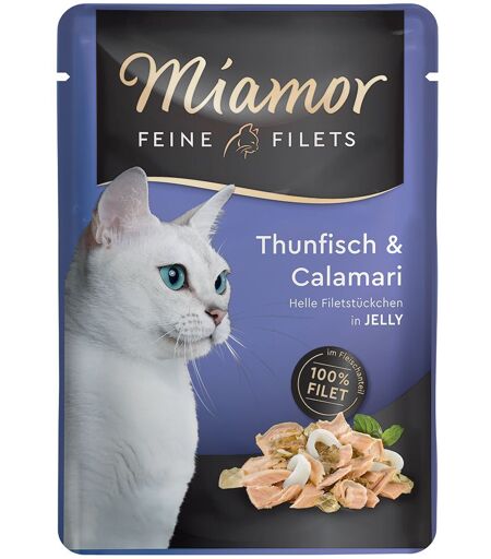 24x100g Filets Fins Thon, Calamar Miamor - Nourriture Pour Chat