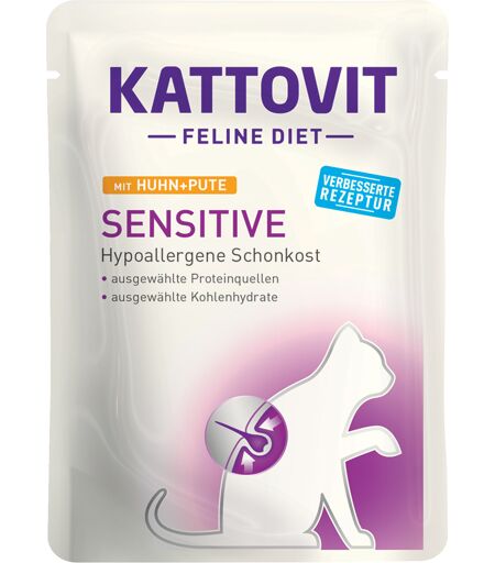 Les sachets fraîcheur Kattovit Sensitive (nourriture humide hypoallergénique) conviennent parfaitement aux chats sensibles qui souffrent d'allergies alimentaires. Les problèmes de peau ou de pelage, tout comme les troubles digestifs, sont très... ...