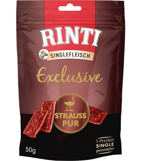 3 x 50 g RINTI Singlefleisch Exclusive Snack Strauss Pur Hundefutter