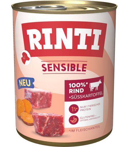 RINTI Sensible 6 x 800 g pour chien - bœuf, patates douces