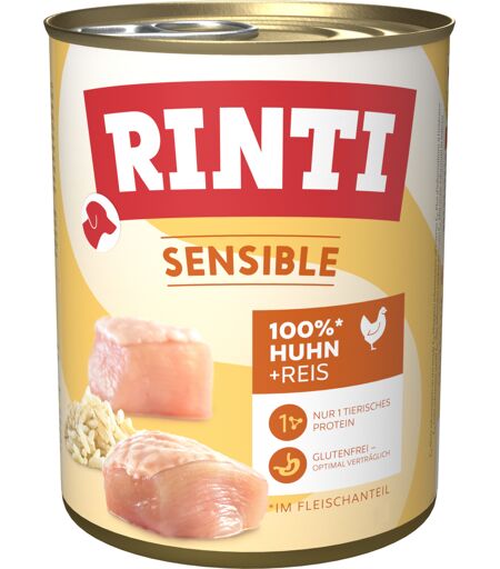 La nourriture en boîte RINTI Sensible est particulièrement adaptée aux chiens sensibles et souffrant d'allergies alimentaires. RINTI Sensible ne contient qu'une seule source de protéines. Hormis les céréales et les légumes figurant sur... ...