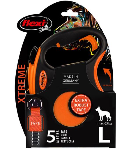 Laisse-sangle flexi Xtreme orange, 5 m pour chien - taille L : jusqu'à 65 kg