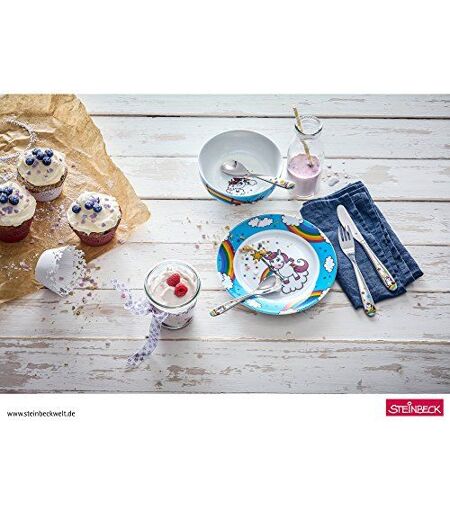 Couverts enfants 4 pièces licorne wmf 1286056040 comprenant 1 cuillère enfant, 1 fourchette enfant, 1 couteau enfant et 1 cuillère à café enfant. Inoxydable, lavable au lave-vaisselle, dimensionnellement stable, hygiénique et résistant aux acides. Les motifs colorés des couverts sont inrayables, résistants aux rayures, résistants aux aliments et inaltérables.cette créature mythique, scintillante aux couleurs de l?arc-en-ciel captive les jeunes et les moins jeunes du monde entier. Par leur taille et leur forme ergonomique, ces nouveaux produits sont parfaitement adaptés aux petites bouches de vos enfants. Le couteau, la fourchette et les cuillères en cromargan® sont très fonctionnels. Les motifs gais de ce set lui donnent un charme incomparable qui vous séduira autant que vos enfants ! - type de produit : couvert de table. décor licorne. nombre de pièces : 4. matière : cromargan® acier inoxydable 18/10. coloris : acier. lavable au lave-vaisselle. longueur : 13 - 18.5 cm. poids : 249 g. ...