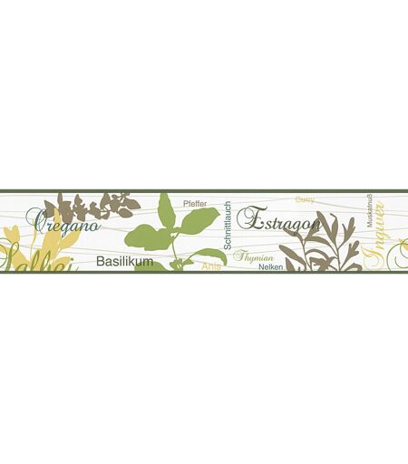 A.S. CREATIONS A.s.creations - Frise papier peint à inscriptions Frise tapisserie verte, marron et jaune pour cuisine Frise murale herbes aromatiques - Jaune, Vert