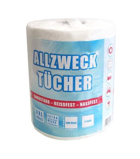 résistant même mouillé, rouleau XXL, structure très absorbante, 100% cellulose, 500 feuilles, 2 couches, perforé, se déroule du centre, diamètre du mandrin: 190 mm, dimensions d'une feuille: 630 x 225 mm (5522303) usage universel dans la maison, le jardin & l'atelier ...