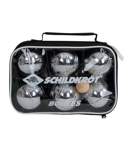 contenu: 2x 3 boules de pétanque en métal remplies de sable, pour deux joueurs, 1 cochonnet en bois, 1 mesureur de dis- tance, dans un sac de transport avec face transparente, fer- meture à zip et poignée (230 x 160 x 80 mm), (970011/970008) poids/boule: env. 720 g ...