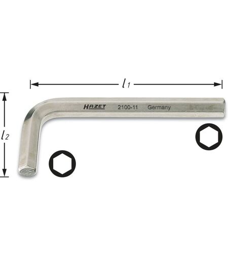 Hazet Clé mâle coudée - Profil à 6 pans intérieurs - Taille: 2.5 - Longueur totale: 20.5 mm - 2100-025