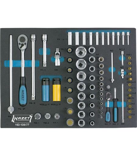 Garniture en mousse souple bimatière « Safety-Insert-System » (SIS) HAZET Made In Germany Garniture en mousse souple bimatière « Safety-Insert-System » (SIS) HAZET Système de rangement parfait - tous les outils y trouvent leur place Vérification générale intégrée et rapide - l'absence d'un outil est immédiatement remarquée Possibilités de combinaisons infinies Appropriée à toutes les servantes d'atelier HAZET Servante d'atelier avec tiroirs Pour les servantes d'atelier Servante d'atelier 173, 179 (XL-XXL) et 180, nous recommandons l'utilisation supplémentaire de garniture en mousse souple 163-522x40 ou 163-522x50 Approprié aux servantes d'atelier Assistent HAZET 173, 179, 179 W, 179 BIG-1, 179 XL, 179 XXL, 179 A XXL, 179 T XXL et 180 avec des tiroirs d'une profondeur de 398 mm Caractéristiques techniques: Nombre d'outils: 77 pièces Poids net: 5.91 kg Emballage interne: Garniture en mousse souple bimatière « Safety-Insert-System ». Garniture également appropriée aux servantes d'atelier HAZET Assistent Taille système de classement: 3/3+ (519 x 392 mm) Entraînement: Carré creux 12,5 mm (1/2 pouce) Sortie: Profil Traction à 6 pans extérieurs Liste des pièces: 850-4 850-5 850-5.5 850-6 850-7 850-8 850-9 850-10 850-11 850-12 850-13 850-14 850LG-4 850LG-5 850LG-5.5 850LG-6 850LG-7 850LG-8 850LG-9 850LG-10 850LG-11 850LG-12 850LG-13 858-1 863P 865 866U 867-2 868 869 8501-3 8501-4 8501-5 8501-6 8501-8 8503-0.6X3.5 8503-1X5.5 8503-1.2X8 8506-PH1 8506-PH2 8507-PZ1 8507-PZ2 900-10 900-11 900-12 900-13 900-14 900-15 900-16 900-17 900-18 900-19 900-20 900-21 900-22 900-24 900-27 900-30 900-32 903SLG-17 903SLG-19 915 916SP 917-5 918-10 919-1 920 958-1 958-2 986-5 986-6 986-7 986-8 986-10 986-12 986-14 986-17 ...