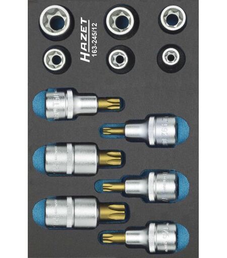 Hazet Jeu d'outils, TORX - Carré creux 12,5 mm (1/2 pouce) - Profil TORX extérieur, Profil TORX intérieur - Nombre d'outils: 12 - 163-245/12