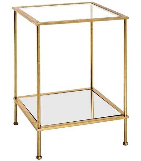 3S. x Home Table d'appoint carré en tube d'acier laqué or avec plateau de dessous en miroir et plateau de dessus en verre trempé transparent unisex