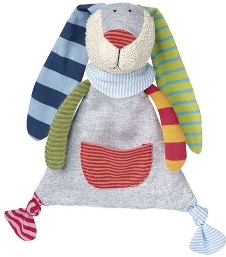 Le joli doudou lapin Ringel dingel de Sigikid va vite être adopté par bébé. Il est tout doux et tout plat et conviendra parfaitement à un nouveau né. Points forts du produit : - Doudou plat, facile à prendre en main - Doudou coloré et rayé Caractéristiques : Ce doudou rayé en forme de lapin avec de grandes oreilles convient particulièrement aux nouveaux nés. Tout plat, il est facile à attraper par les petites mains de bébé. Il ne prend pas de place dans le sac à langer ou le sac d'école. Avec son joli bandana, le pain Ringel dingel deviendra vite le meilleur ami de bébé, avec qui il aimera passer toutes ses nuits. Spécificités : Dimensions : 23 cm Matière : 100% polyester Lavable en machine à 30°C Convient aux nouveaux nés ...
