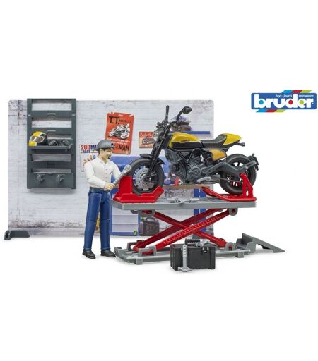 Bruder Theme Coffret Figurine Mécanicien Bworld Avec Moto Scrambler Ducati Et Accessoires