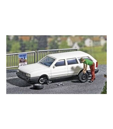 Busch Action-Set 7827 Jeu daction H0, pane de pneus modèle fini SET d'action pour une animation réaliste de votre monde de modèle. Avec VW-Passat Kombi, roue de rechange, cric, croix de roue et triangle d'avertissement pour une crevaison réaliste avec changement de roue, figure incluse.. . Modèle fidèle à l'original Donnees techniques : Classe d'âge : à partir de 15 ans Modèle (modélisme ferroviaire) : modèle fini Thème (modélisme ferroviaire) : en voyage, transport routier Échelle : H0 ...