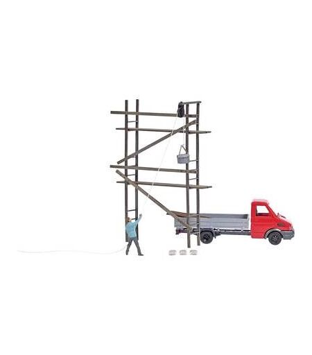 Busch 7902 H0 Iveco Transporteur Daly avec échafaudage et maçon Échafaudage en bois avec flèche et poulie de renvoi en tant que simple train de bouteilles. Avec seau de mortier et sacs, figurine de maçonnerie et véhicule de transport quotidien Iveco avec chargement. Taille de l'échafaudage : 59 x 20 mm, hauteur : 79 mm.. . Donnees techniques : Classe d'âge : à partir de 15 ans Constructeur automobile : Iveco Modèle (général) : Transporteur Daly avec échafaudage et maçon Modèle (modélisme ferroviaire) : modèle fini Type de construction (véhicules de modélisme ferroviaire) : Modèle réduit de véhicule de construction Échelle : H0 ...