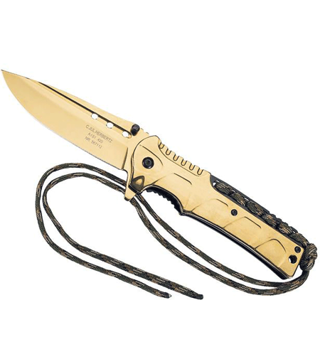 Couteau pliant herbertz 567112 manche inox doré 12cm + lacet paracord