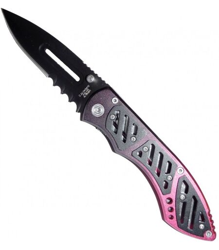 HERBERTZ 240811 Lame noire acier 420 à trou et à dents, à cran intérieur et à bouton Manche 11 cm fantaisie, avec clip Longueur de la lame : 8.5 cm ...