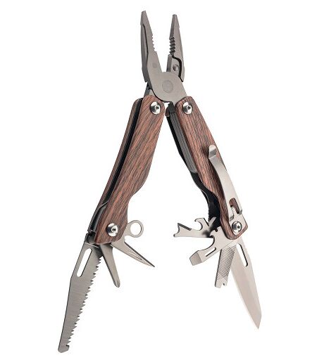 Pince multifonction herbertz 106700 9 pièces inox revêtement titane manche aspect bois 10,2cm + étui nylon