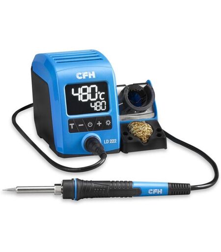 La station de soudage numérique CFH avec écran LCD est idéale pour les amateurs comme pour les utilisateurs plus expérimentés. Avec une plage de température réglable de 150 °C à 480 °C, elle convient à une grande variété de travaux de soudure. La température cible de 380 °C est atteinte en environ 45 secondes, ce qui permet un travail efficace. Grâce aux fonctions intégrées de veille, de mise en sommeil et de verrouillage, l’utilisation est à la fois confortable et sécurisée. La fonction mémoire permet d’enregistrer vos réglages préférés pour les retrouver facilement. Le support du fer à souder, avec nettoyeur de panne inclus, peut être monté à gauche ou à droite de la station – parfait pour les droitiers comme pour les gauchers. Le fer à souder se détache facilement via une connexion enfichable, facilitant ainsi l’entretien et le remplacement. ...
