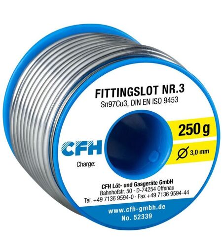 L'étain à souder sans plomb WL339 de la marque allemande CFH est parfaitement adapté pour souder des raccords sur une canalisation d'eau potable en cuivre. Cet étain a un diamètre de 3 mm et est massif, il ne contient donc pas de flux dans son cœur. L'étain est composé à 97 % d'étain et à 3 % de cuivre, le WL339 est donc sans plomb et conforme aux normes EN ISO 9453. En résumé, un produit recommandé pour les travaux de plomberie. ...
