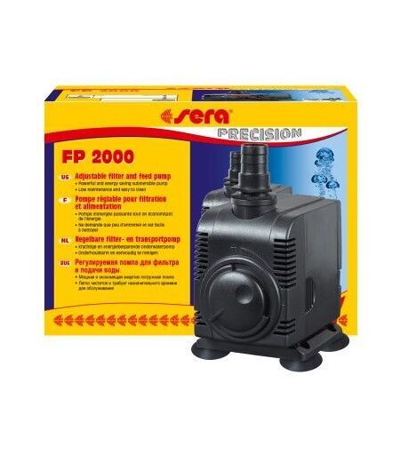 Pompe pour Filtration et alimentation FP2000, de la marque Sera.Pompes FP2000 Sera immergées réglables pour aquariums d'eau douce et de mer.Les pompes pour filtration et circulation d'eau sera FP savent convaincre par leur construction compacte et robuste ainsi que par leur faible consommation d'énergie et leur capacité de réglage. Elles peuvent être utilisées comme pompes pour filtration, entraînement et circulation. Elles sont disponibles dans 7 classes de puissance : Du nano-aquarium au bac d'eau de mer, vous trouverez toujours la bonne puissance. La fixation s'effectue à l'aide des ventouses fournies.La pompe pour filtration et circulation d'eau sera FP 2000 est particulièrement bien appropriée en tant que pompe d'entraînement pour les filtres d'aquarium intérieurs et en tant que pompe de circulation pour les systèmes aquatiques. Leur structure compacte permet de les loger également dans des filtres intérieurs. Elles disposent d'un axe en céramique qui ne rouille pas. Elle pourra par conséquent également être utilisées dans l'eau de mer.Le débit élevé des pompes FP est la garantie de conditions constantes dans l'aquarium et contribue ainsi à stabiliser le système biologique.Le câble d'alimentation inclus d'une longueur de 1,8 m. ...