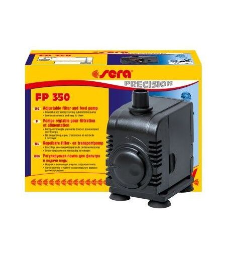 Pompe pour Filtration et alimentation FP350, de la marque Sera.Pompes FP350 Sera immergées réglables pour aquariums d'eau douce et de mer.Les pompes pour filtration et circulation d'eau sera FP savent convaincre par leur construction compacte et robuste ainsi que par leur faible consommation d'énergie et leur capacité de réglage. Elles peuvent être utilisées comme pompes pour filtration, entraînement et circulation. Elles sont disponibles dans 7 classes de puissance : Du nano-aquarium au bac d'eau de mer, vous trouverez toujours la bonne puissance. La fixation s'effectue à l'aide des ventouses fournies.La pompe pour filtration et circulation d'eau sera FP 350 est particulièrement bien appropriée en tant que pompe d'entraînement pour les filtres d'aquarium intérieurs et en tant que pompe de circulation pour les systèmes aquatiques. Leur structure compacte permet de les loger également dans des filtres intérieurs. Elles disposent d'un axe en céramique qui ne rouille pas. Elle pourra par conséquent également être utilisées dans l'eau de mer.Le débit élevé des pompes FP est la garantie de conditions constantes dans l'aquarium et contribue ainsi à stabiliser le système biologique.Le câble d'alimentation inclus d'une longueur de 1,8 m. ...