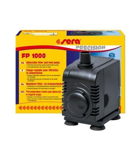 Pompe pour Filtration et alimentation FP1000, de la marque Sera.Pompes FP1000 Sera immergées réglables pour aquariums d'eau douce et de mer.Les pompes pour filtration et circulation d'eau sera FP savent convaincre par leur construction compacte et robuste ainsi que par leur faible consommation d'énergie et leur capacité de réglage. Elles peuvent être utilisées comme pompes pour filtration, entraînement et circulation. Elles sont disponibles dans 7 classes de puissance : Du nano-aquarium au bac d'eau de mer, vous trouverez toujours la bonne puissance. La fixation s'effectue à l'aide des ventouses fournies.La pompe pour filtration et circulation d'eau sera FP 1000 est particulièrement bien appropriée en tant que pompe d'entraînement pour les filtres d'aquarium intérieurs et en tant que pompe de circulation pour les systèmes aquatiques. Leur structure compacte permet de les loger également dans des filtres intérieurs. Elles disposent d'un axe en céramique qui ne rouille pas. Elle pourra par conséquent également être utilisées dans l'eau de mer.Le débit élevé des pompes FP est la garantie de conditions constantes dans l'aquarium et contribue ainsi à stabiliser le système biologique.Le câble d'alimentation inclus d'une longueur de 1,8 m. ...