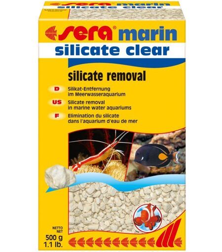 Sera Marin Silicate cleat est prévu pour l'élimination durable des silicates dans les aquariums d'eau de mer.Les silicates favorisent la prolifération des algues siliceuses dans les aquariums d'eau de mer. sera marin silicate clear lie facilement et durablement les silicates. sera marin silicate clear est livré avec un sachet pratique. Avant l'utilisation, rincer rapidement sera marin silicate clear à l'eau courante et le placer tout simplement dans un filtre ou à un endroit avec une bonne circulation d'eau. Efficace jusqu'à 3 mois en fonction de la teneur en silicates.500Gr suffisent pour un bac de 200 à 400 litres.Astuce : Le sera Test SiO3 permet de déterminer de façon sûre la teneur en silicates. ...