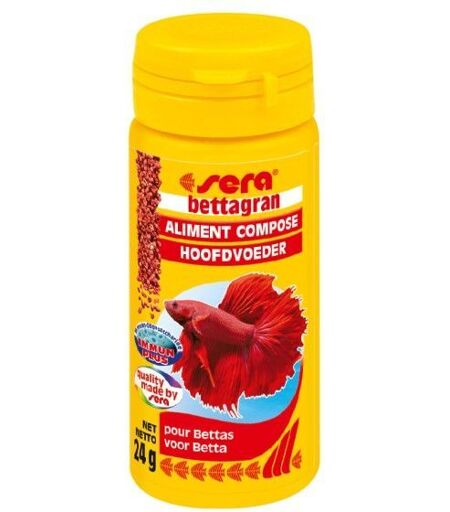 Granulés spéciaux pour les combattants (Betta) pour renforcer les couleursCet aliment est spécialement conçu pour satisfaire aux exigences des poissons combattants et autres petits poissons insectivores. Les granulés fins uniques descendent très lentement, ramollissent rapidement et restent longtemps à la disposition des animaux. De précieuses matières premières sont la garantie d'une alimentation équilibrée et d'animaux en bonne santé, aux couleurs éclatantes.Composition : amidon de maïs, gluten de blé, ¿uf entier en poudre, farine de poisson, Ca-caséinate, farine de blé, huile de poisson, levure de bière, germes de blé, herbes, luzerne, ortie, gammarus, algues marines, persil, paprika, épinard, mannane-oligosaccharides (MOS 0,4 %), algues spirulines, carottes, farine de Perna canaliculus, ail. Colorants : additifs CE. Analyse de la qualité Protéines: 40.4 %, Matière grasse: 8,7 %, Fibres: 3.4 %, Cendre: 4,0 %, Humidité: 6,1 % Additifs, Vitamine et Provitamine pro kg Vit. A: 37000 IU, Vit. B1: 35 mg, Vit. B2: 90 mg, Vit. C: 550 mg, Vit. D3: 1800 IU, Vit. E: 120 mg ...