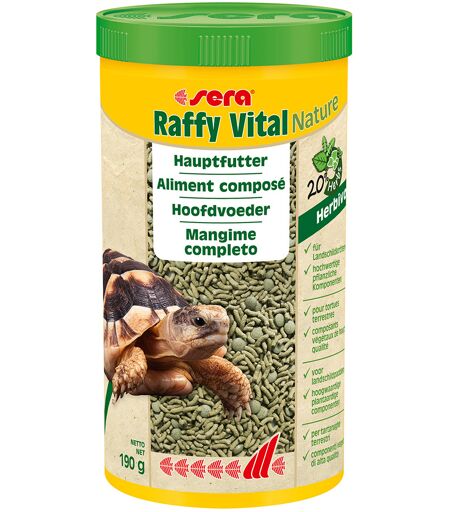 sera Raffy Vital Nature est un aliment composé, sans colorant ni conservateur, pour les tortues terrestres et tous les autres reptiles herbivores, sous forme de sticks et de pastilles à base de plantes. Le mélange de différentes herbes, algues et... ...