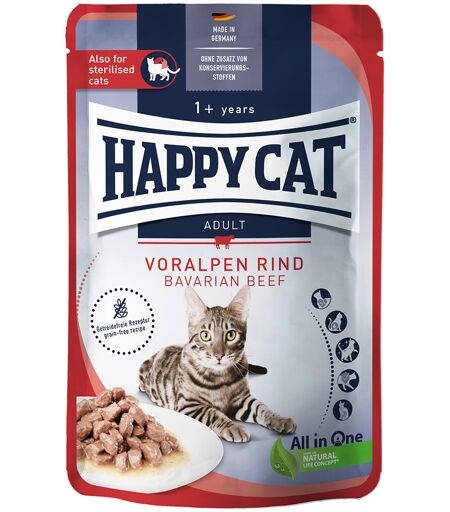 12x85g Happy Cat Meat en sauce bœuf des Préalpes - Pâtée pour chat