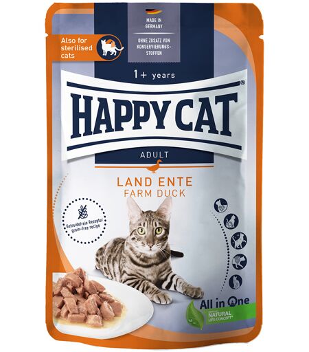 12x85g Happy Cat Meat en sauce canard fermier - Pâtée pour chat