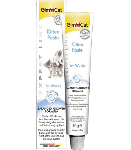 Votre chaton a besoin d'une alimentation équilibrée et riche en substances vitales pour bien grandir. La pâte GimCat constitue un aliment complémentaire, qui répond parfaitement aux besoins nutritionnels des chatons dès 6 semaines et pendant leurs... ...