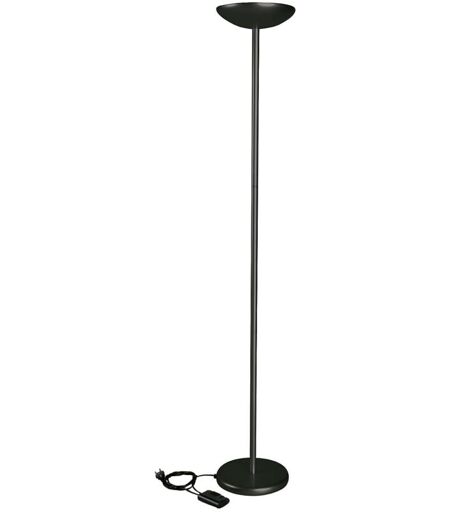 Lampe halogène sur pied à éclairage indirect MAULsky, 120 W, intensité lumineuse réglable, noir. Produit livré = monté. Pied de lampe = pied support. Classe d'efficacité énergétique = G (spectre A à G). Consommation électrique = 120 kWh/1000h. Ampoule = halogène. Puissance = 120 watts. Couleur de lumière = blanc chaud. Température couleur = 2900 K. Indice de rendu des couleurs = 100. Puissance max. d'éclairage = 1980 lux. Flux lumineux = 2220 lumens. Alimentation = 220 - 240 V. Câble de raccordement = 1.8 m. Longévité = 2000 h. Type de protection = I fiche à contact de sécurité. Coloris = noir. Propriété = intensité lumineuse variable. Commutation = interrupteur. Matériau = métal. Hauteur = 1830 mm. Poids = 5.42 kg. Diamètre pied = 260 mm. Puissance réglable en continu en fonction de l'activité ou de la consommation d'énergie souhaitée. Pour un éclairage indirect de la pièce et une ambiance de travail agréable. Tête de lampe avec verre de protection et réflecteur pour une exploitation ...