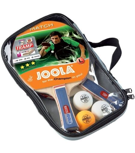 Coffret Duo JOOLA - Idéal pour le jeu récréatif. Comprend une raquette JOOLA Match, une raquette JOOLA Top et trois balles trois étoiles (deux blanches et une orange). ...