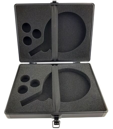 Housse JOOLA Alu - Fabriquée en aluminium et garnie d'éponge, cette housse légère protégera votre raquette et vos balles des intempéries, des dommages et de la saleté. Elle a la forme d'une valise pratique fermée par une boucle élégante. Très pratique et maniable, elle protégera votre ensemble de tennis de table. L'éponge spécialement conçue à l'intérieur de la housse peut accueillir deux raquettes et six balles de taille standard. ...