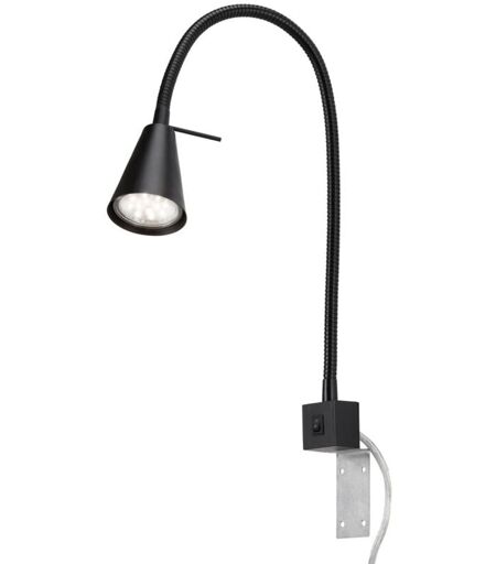 Lampe de lecture LED moderne en noir, en metal - par le bras flexible (50 cm) et les options de fixation agauche, adroite et au-dessus, vous pouvez controler la lumiere individuellement - avec de l'energie a4 watts, Une sortie lumineuse de 400 lumens et une temperature de couleur de 3 000 Kelvin peuvent egalement etre utilisees comme une lampe de lecture comme une lumiere de lecture - commodement allume sur le feu de lit aLED atravers l'interrupteur ON / OFF et convainc avec une duree de vie moyenne de UP a20 000 heures et une ligne d'alimentation en longueur de 1800 mm - Dimensions du produit: 403x217 mm (HXA), base 35x35 mm, tete: 58 mm (D) ...