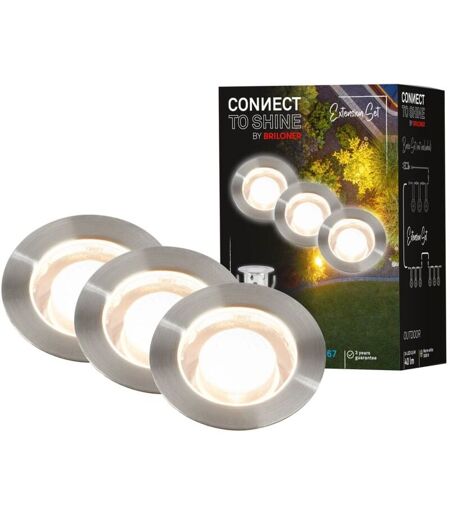 Set de 3 spots LED encastr s dans le sol pour le syst me de jardin Connect to Shine 12V de Briloner Illuminez votre espace ext rieur avec notre set d'extension de spots LED encastr s dans le sol 12V, sp cialement con u pour un clairage d'ambiance et efficace de votre terrasse et de votre coin salon. Ce set se compose de trois lampes LED encastr es dans le sol, qui s duisent non seulement par leur long vit , mais aussi par leur r sistance aux intemp ries. Ce kit est une extension du kit de d marrage 3912032, mais il peut galement tre combin volont avec d'autres projecteurs de notre s rie Connect to Shine. Un kit de d marrage est toujours n cessaire pour la mise en service. D tails du produit clairage agr able : trois lampes encastr es dans le sol d'une puissance de 0,6W chacune, qui fournissent ensemble 120 lumens avec une temp rature de couleur blanc chaud agr able de 3000K. R sistant aux intemp ries : Gr ce la certification IP67, les lampes encastr es sont tanches la poussi re et ...
