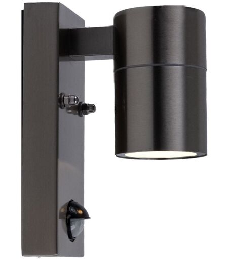 Heitronic Applique extérieure avec détecteur de mouvement Acier inoxydable Lampe de façade Lampe de terrasse Lampe de jardin couleur acier, 1x GU10, LxHxP 6,8