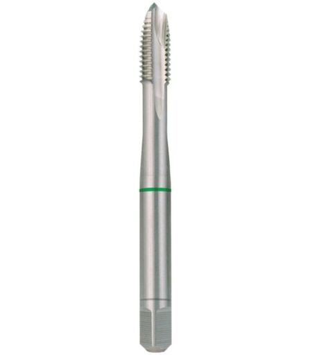 métrique DIN ISO 13 - Taraud machine, droit entrée Gun, à queue renforcée pour trous débouchants.Taraud machine rectifié en HSS avec 5 % de cobalt.Grâce à une meilleure résistance aux températures élevées, la durée de vie de l’outil est accrue. Pour la réalisation de taraudages traversant dans des aciers non alliés ou alliés d’une résistance de max. 1000 N/mm², dans la fonte malléable et dans les métaux non ferreux. Le taraudage se fait en une seule opération.En ajoutant du cobalt dans un acier rapide, on obtient un alliage plus dur et plus résistant à la chaleur. Il sera utilisé principalement pour l’usinage des aciers inoxydables et des aciers fortement alliés. Etant plus dur, l’outil devient en contre partie plus cassant et plus fragile.La teneur en cobalt de 5% garantit une résistance plus élevée à la chaleur, ainsi qu'une stabilité plus élevée. Caractéristiques techniques: Direction de coupe: Coupe à droitePas: 0,45 mmLong. totale L1: 50,0 mmPoids: 0,003 kgEntrée: Type B : env. ...