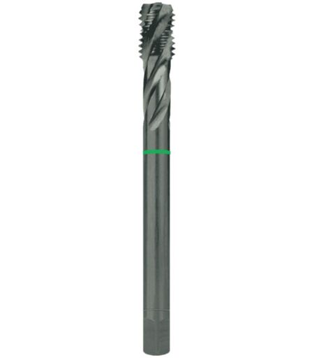 métrique DIN ISO 13 - Taraud machine hélicoïdal à queue dégagée hélice à droite à 35° RSP, pour trous borgnes. Taraud machine rectifié en HSS avec 5 % de cobalt, et vaporisé. Pour la réalisation de taraudages borgnes dans des aciers non alliés ou alliés d’une résistance de max. 1000 N/mm², dans les aciers inoxydables, dans la fonte malléable et dans les métaux non ferreux. Le taraudage se fait en une seule opération. La "vaporisation" consiste à créer une micro oxydation de la surface de l’outil sur une très faible épaisseur (quelques microns). Ce traitement a pour but d’améliorer l’accroche des huiles de coupe sur la surface de l’outil et donc de favoriser le glissement du copeau. On évite ainsi les risques de colmatage de copeaux qui sont à l’origine d’un mauvais état de surface du taraudage, voir d’une casse de l’outil. Il est par contre fortement déconseillé d’utiliser les outils vaporisés à sec. La vaporisation améliore l'adhérence des lubrifiants à la surface de l'outil. ...
