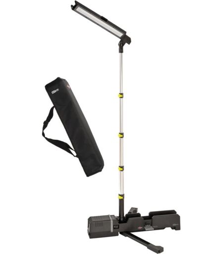 Description générale Le projecteur LED Multi Battery 6050 MA à batterie rechargeable est conçu pour une utilisation intérieure et extérieure avec un indice de protection IP54, offrant une résistance aux éclaboussures et à la poussière. Il dispose d'un mât télescopique entièrement repliable, réglable jusqu'à 140 cm et 183 cm en position verticale, garantissant une grande flexibilité d'utilisation. Avec une puissance de 60W et un flux lumineux de 7700 lm, ce projecteur est parfait pour les chantiers ou les travaux nécessitant un éclairage puissant et mobile. Il est compatible avec un large éventail de batteries 18V des principaux fabricants d'outillage électrique. Spécifications techniques Puissance : 60W Flux lumineux : 7700 lm Température de couleur : 6500 K Indice de protection : IP54 Indice de résistance aux chocs : IK08 Dimensions : 112 x 698 x 129 mm Matériau du boîtier : Plastique et métal Poids : 3,78 kg Hauteur : 12,90 cm, Longueur : 11,20 cm, Largeur : 69,80 cm Compatibilité ...